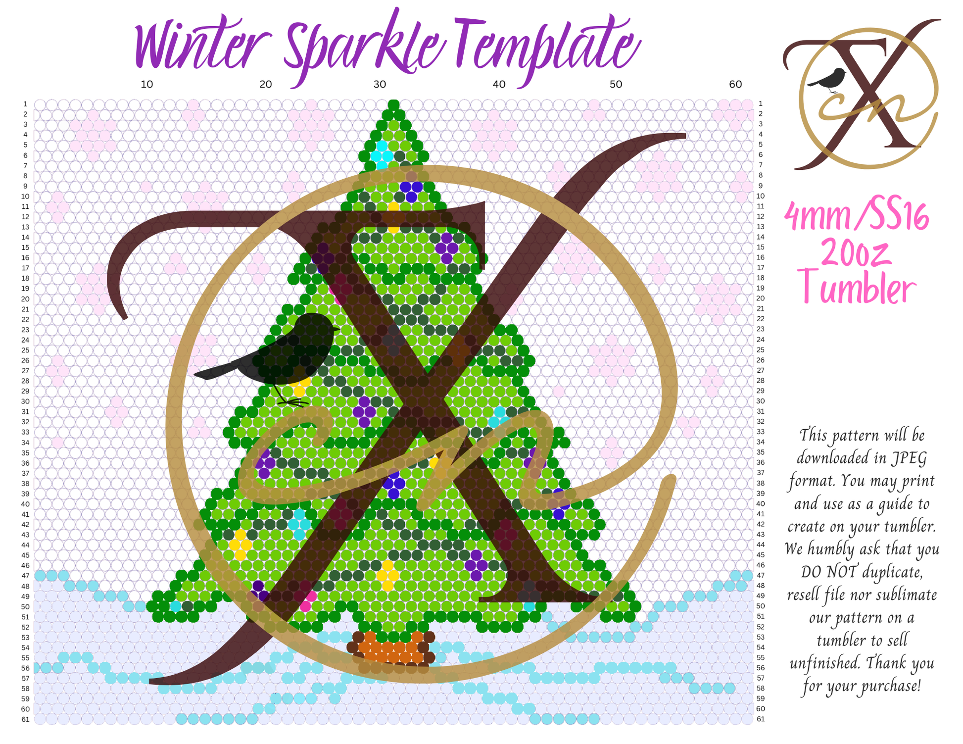 This digital download inspires a dazzling creation for your 20oz skinny straight tumbler. Optimized for SS16/4mm rhinestones, the Winter Sparkle template offers a captivating design to mesmerize.